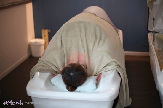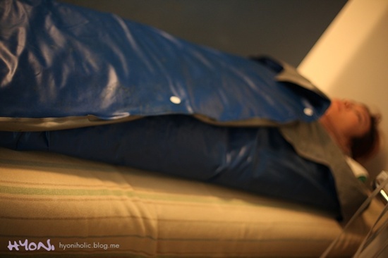 온몸에 젤을 바르고 20분정도 누워 있는데