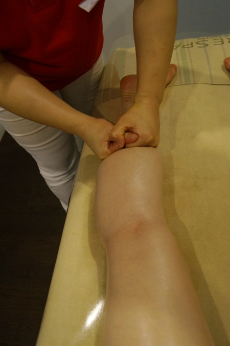 골반 교정을 마치고 나면 바로 하체경락 맛사지에 들어가게 되는데