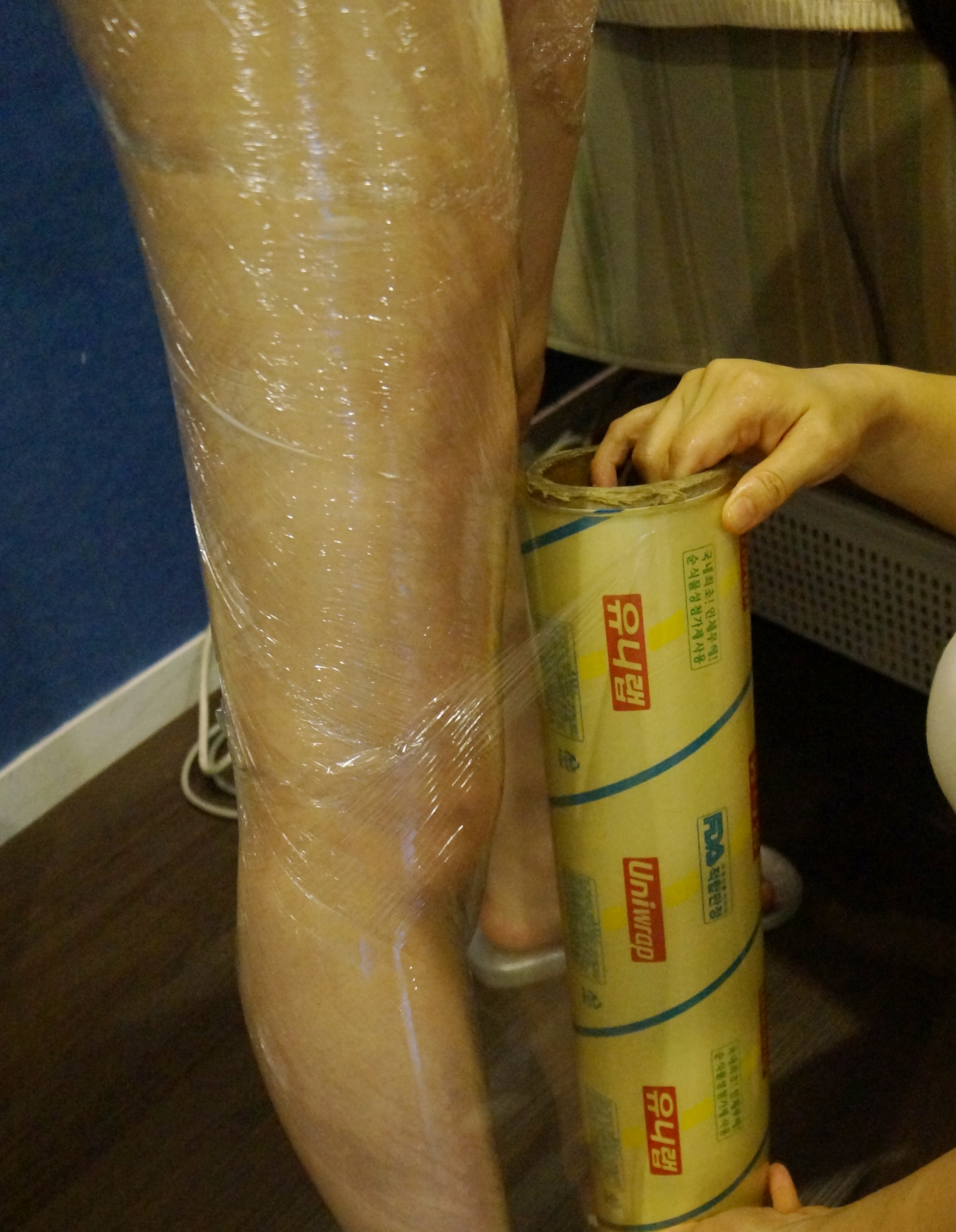 랩으로 다리를 전체적으로 감싸주고 난 다음에