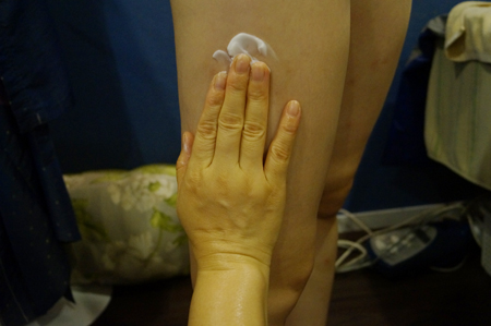 요 크림은 다리에 전체적으로 골고루 다 발라 주시고 나면-
