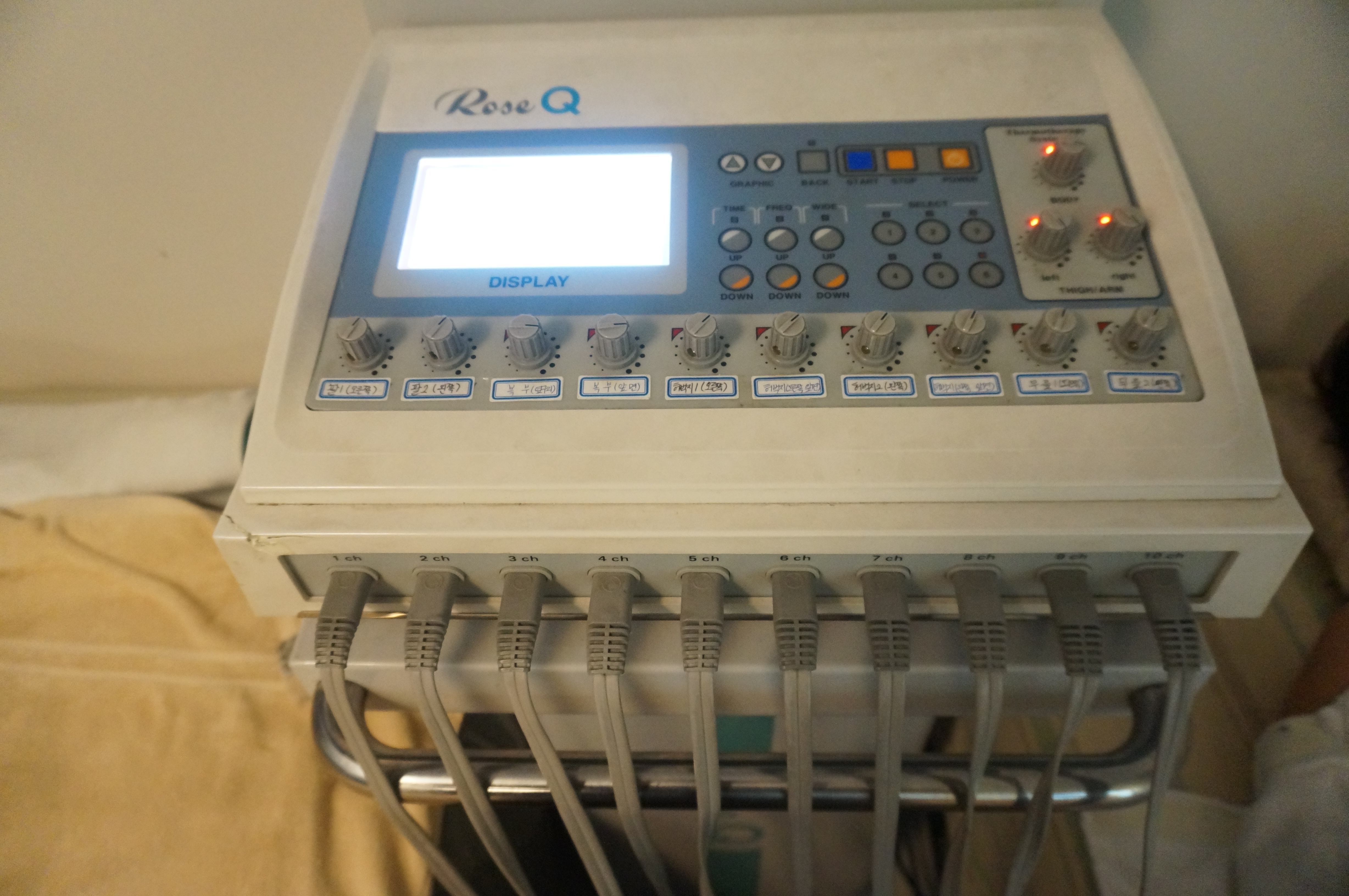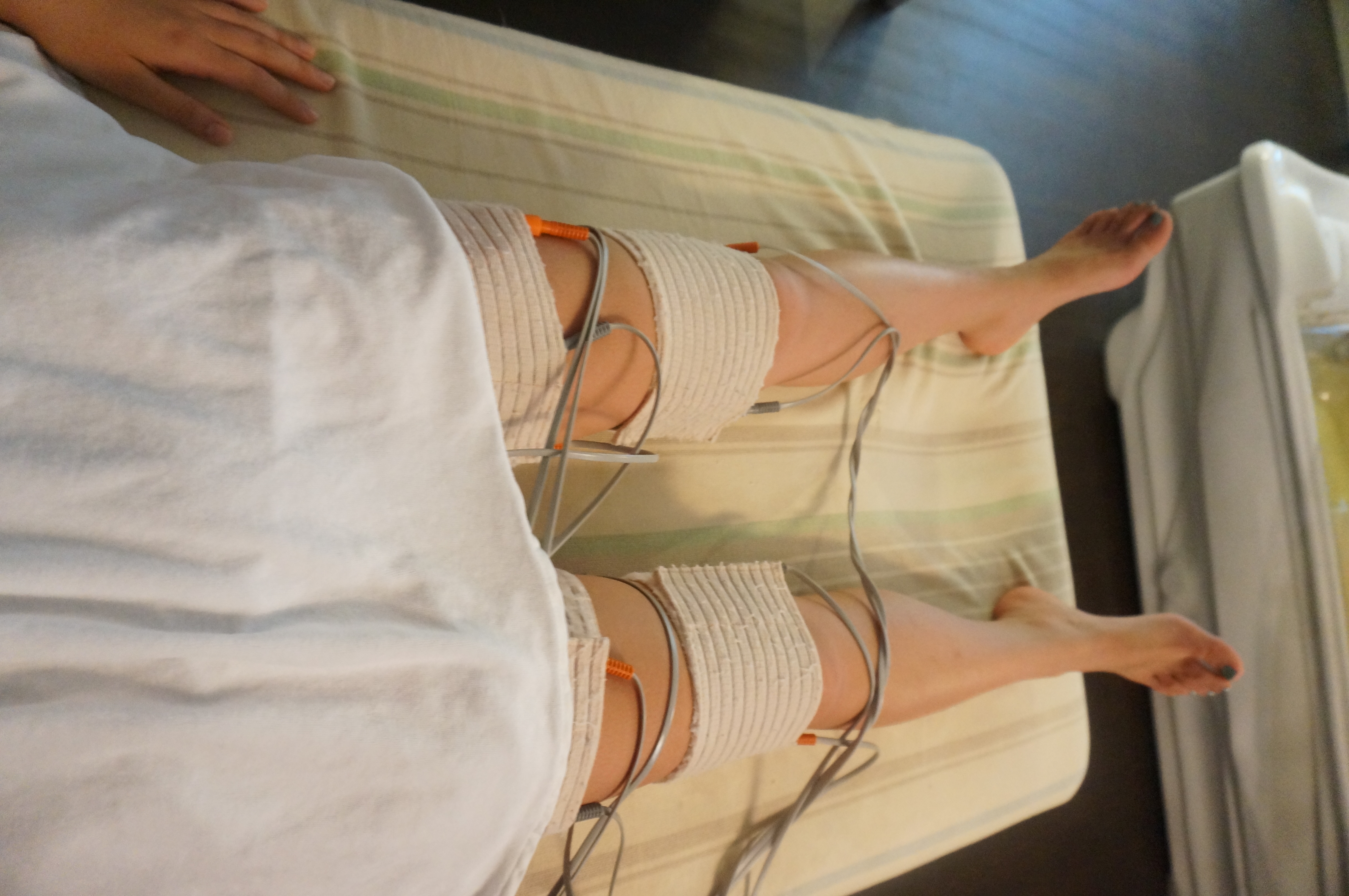 전신에 이렇게 저주파기기를 감고 누워있어요~