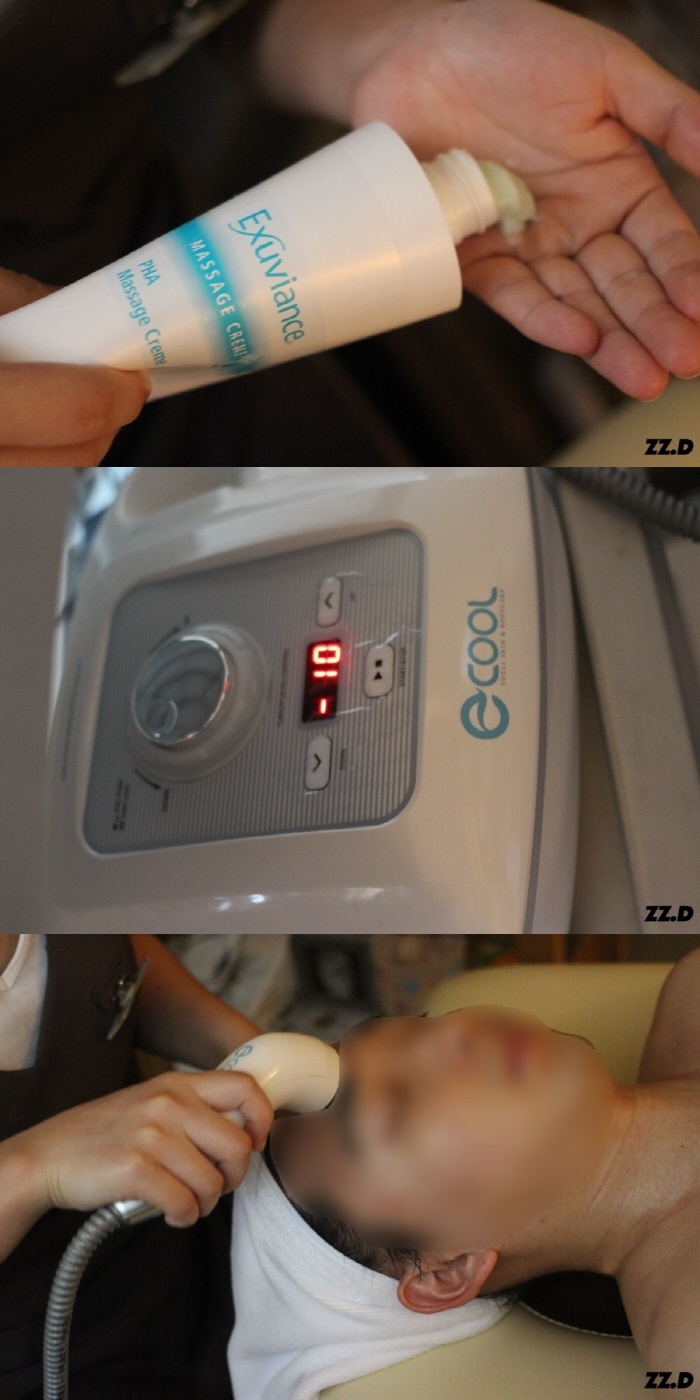 그리고 마사지 크림을 바른 후 기계로 관리를 해주시는데 기계의 차가운 온도를 이용해서