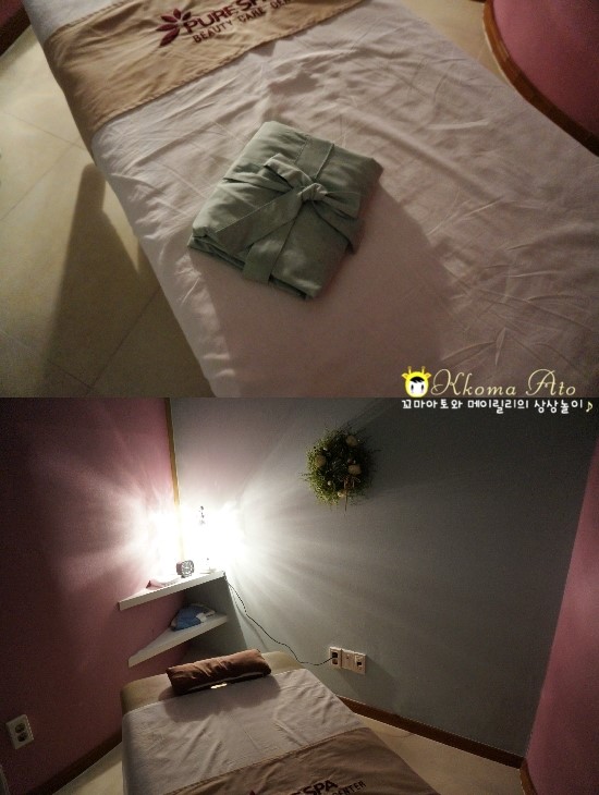 ㅊ체크후, 전신 마스크실로 옮겨서 슬리밍 팩을 바르고