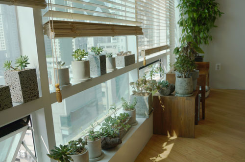 다육이 식물들로 분위기를 살려주고 있다.