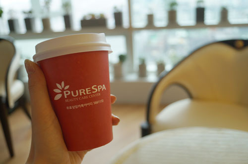 퓨어스파에서 익스 하체 프로그램 경락맛사지를 다 받고 나서 받아가는 따뜻한 차다.