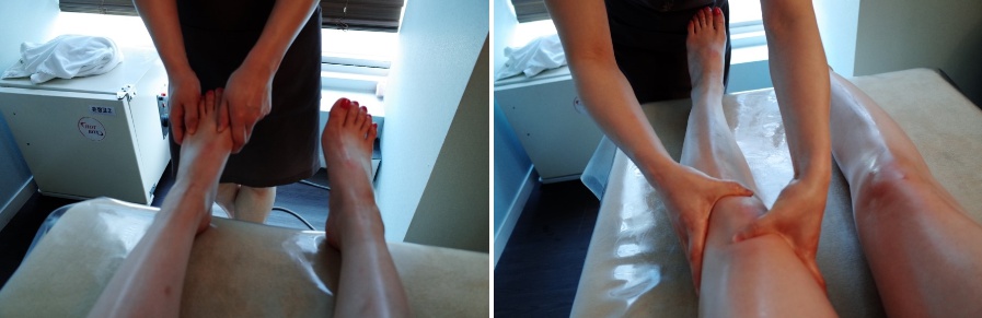 직원분께 부탁해서 찰칵! 두분께서 동시에 수기로 경락마사지를 해주시는데
