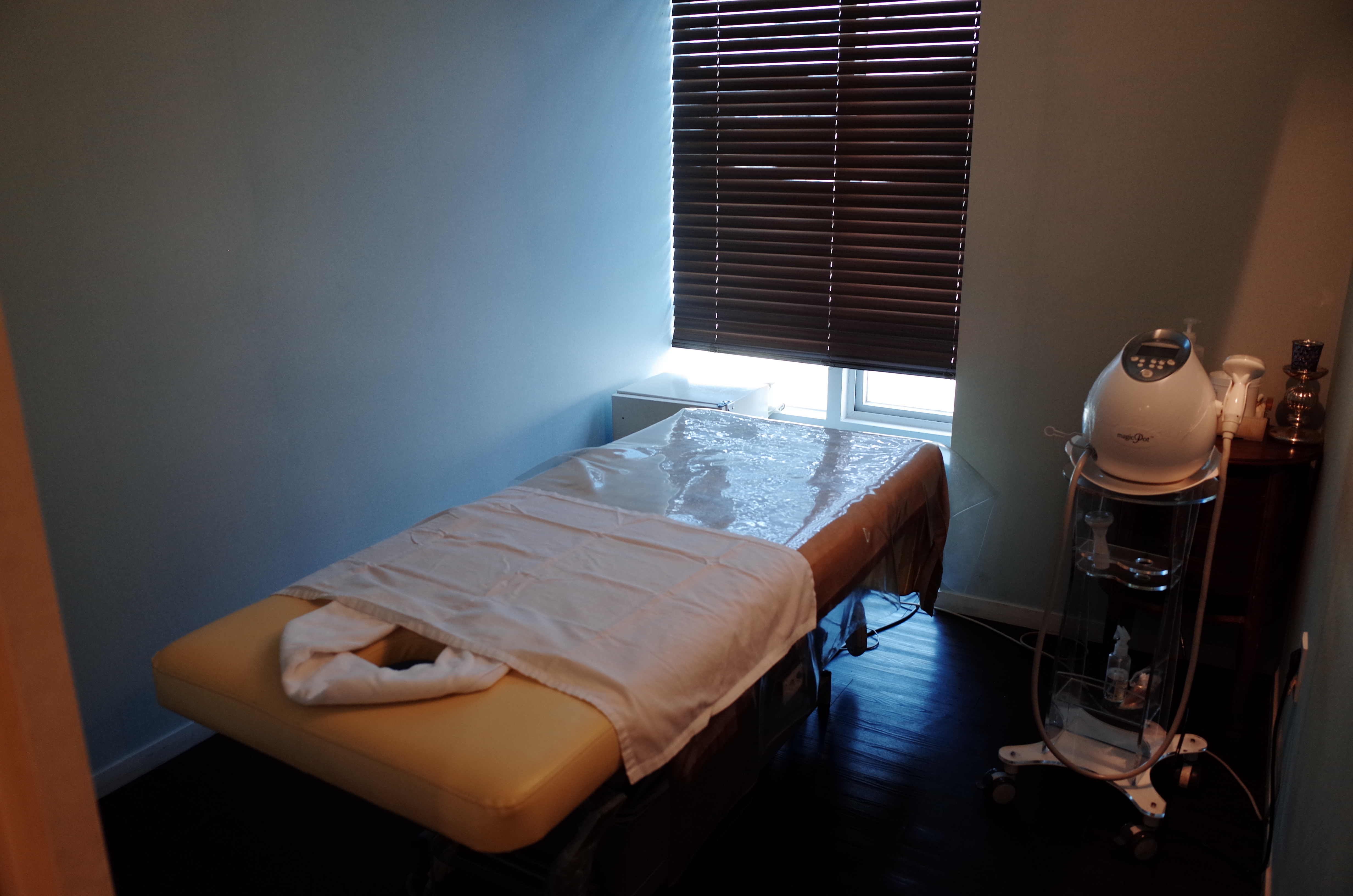 경락마사지가 끝나고 마지막으로 팩을 바르고 지방분해를 위해