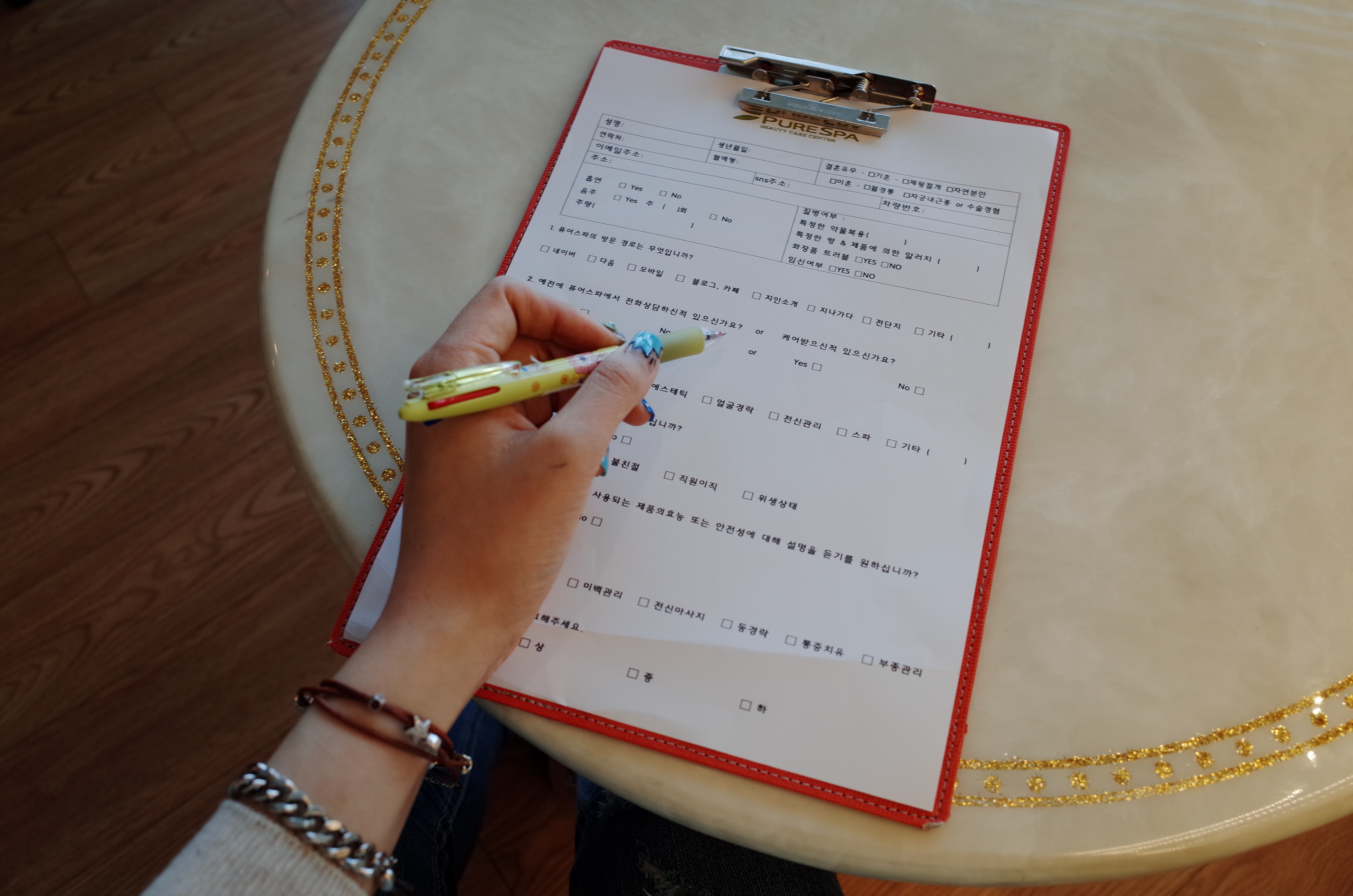 간단한 질문지를 적으며 기다렸어요. 그리고 실장님과 상담을 한 후