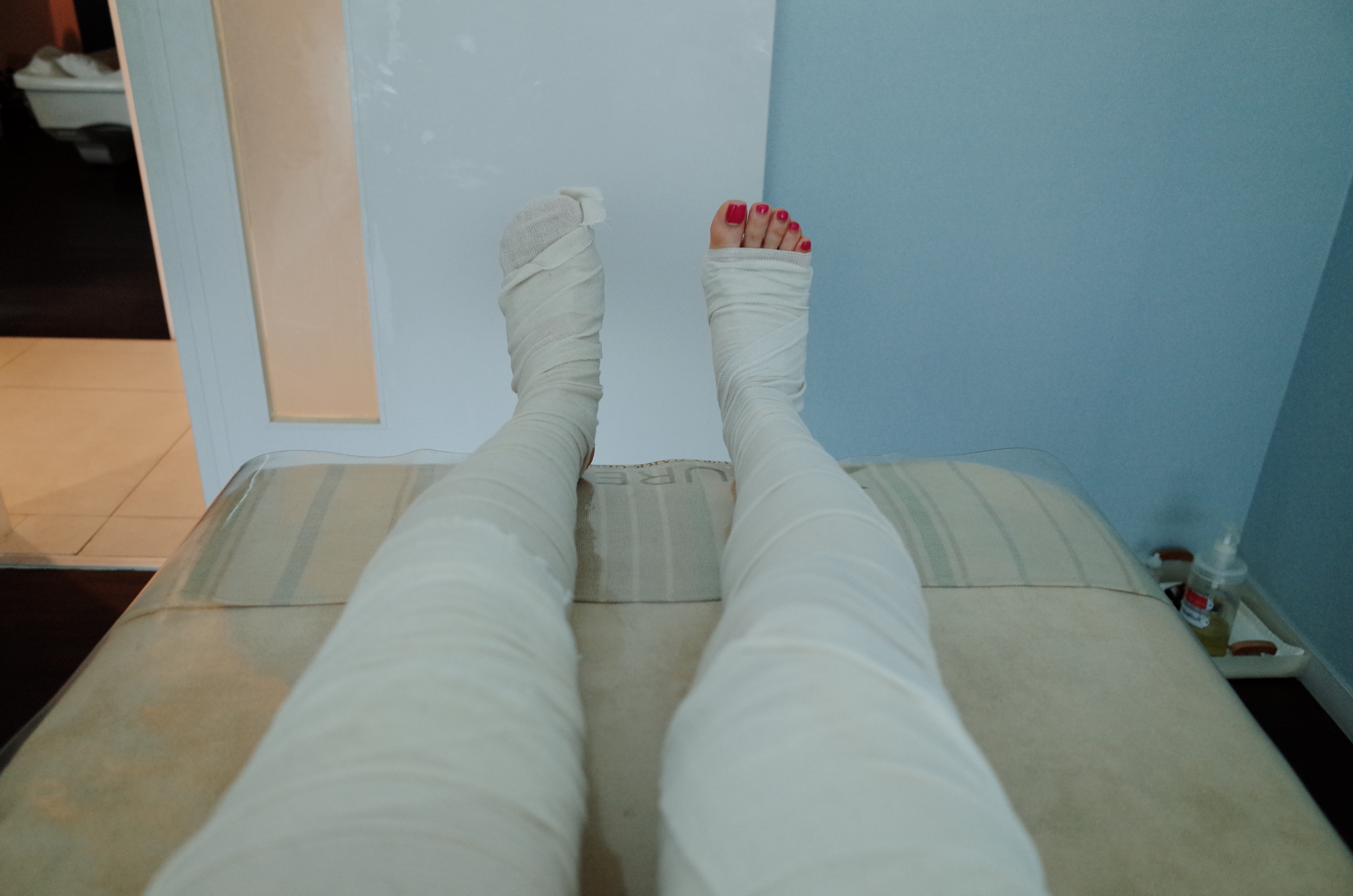 이렇게 다리를 둘둘 붕대로 감고 차갑게 다시한번 하체관리!