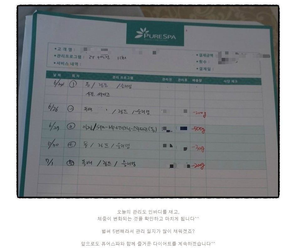 오늘도 퓨어스파 다이어트 관리에 대한 리뷰를 해볼텐데요~