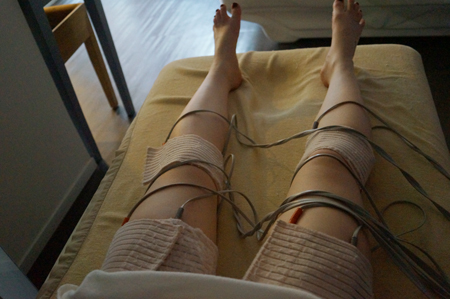 온 몸에 전신적으로 저주파 슬리밍을 받았어요 ^^