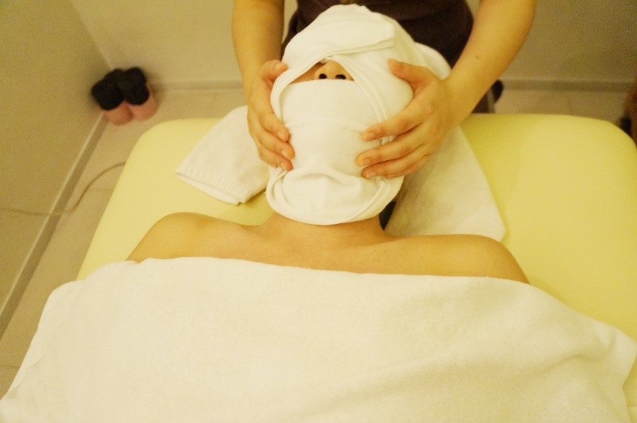 뜨거운 수건으로 얼굴을 닦아줍니다