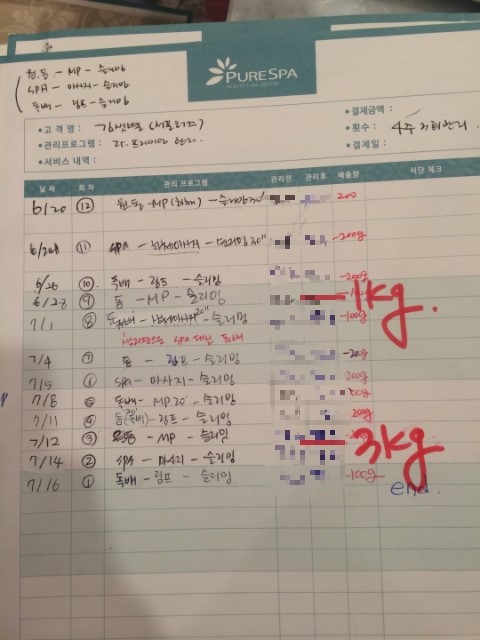 사실 주3회 가기는 힘들었고, 주3회동안 4주. 퓨어스파로 예약된 시간에 가려면 정말 말그대로 칼퇴를 해야 했는데.