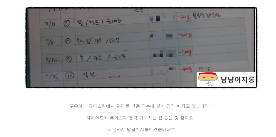 냠냠이지롱의 퓨어스파에서 10번째 관리 리뷰를 시작해보도록하겠습니다.