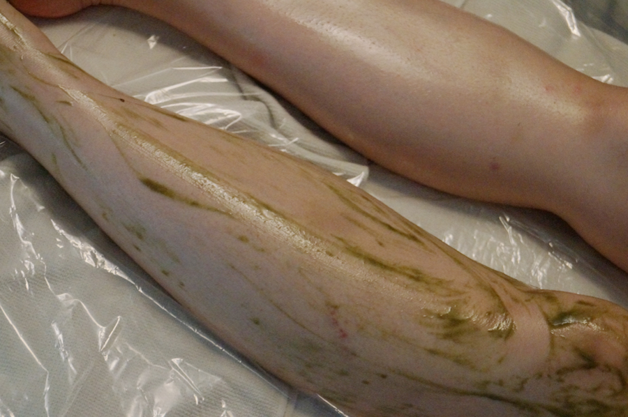 하체경락마사지가 끝나고 나면 마지막으로 앙띠까삐똥 팩을 받게 되는데요 -