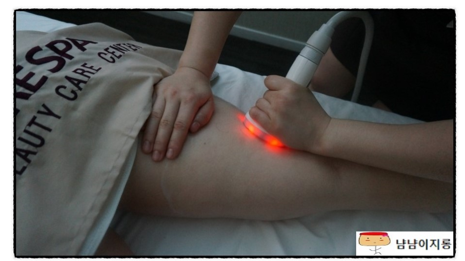 단순히 하체만 진행하는 것이 아니라 허벅지에서 조금 더 올라온 치골까지 기계로 관리를 받습니다.