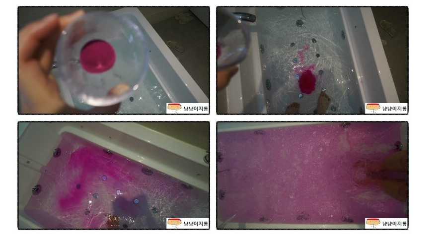 그리곤 붉은빛의 아로마 솔트가 뿌려진 스파를 즐깁니다~