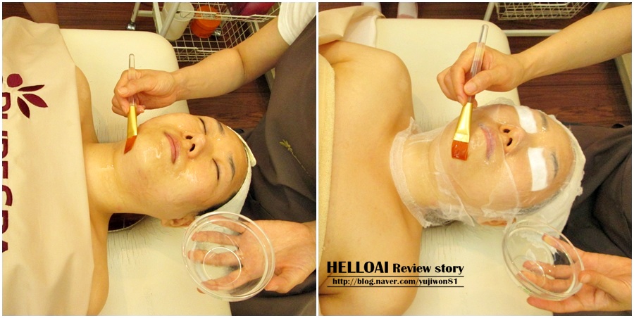 줄기세포 배양액 고농축 앰플을 고루 뿌려준 다음엔 청정해지역에서 추출한 해조류의 미네랄마스크를 도포해주었어요.