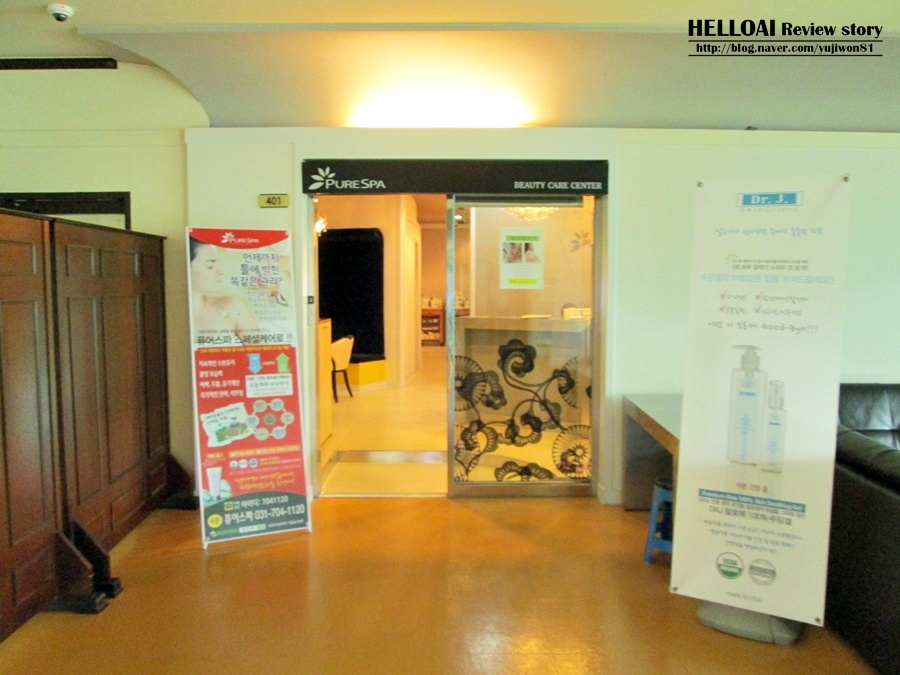 엘리베이터를 타고 4층에 내리면 정면으로 이렇게 퓨어스파 입구가 보여요~