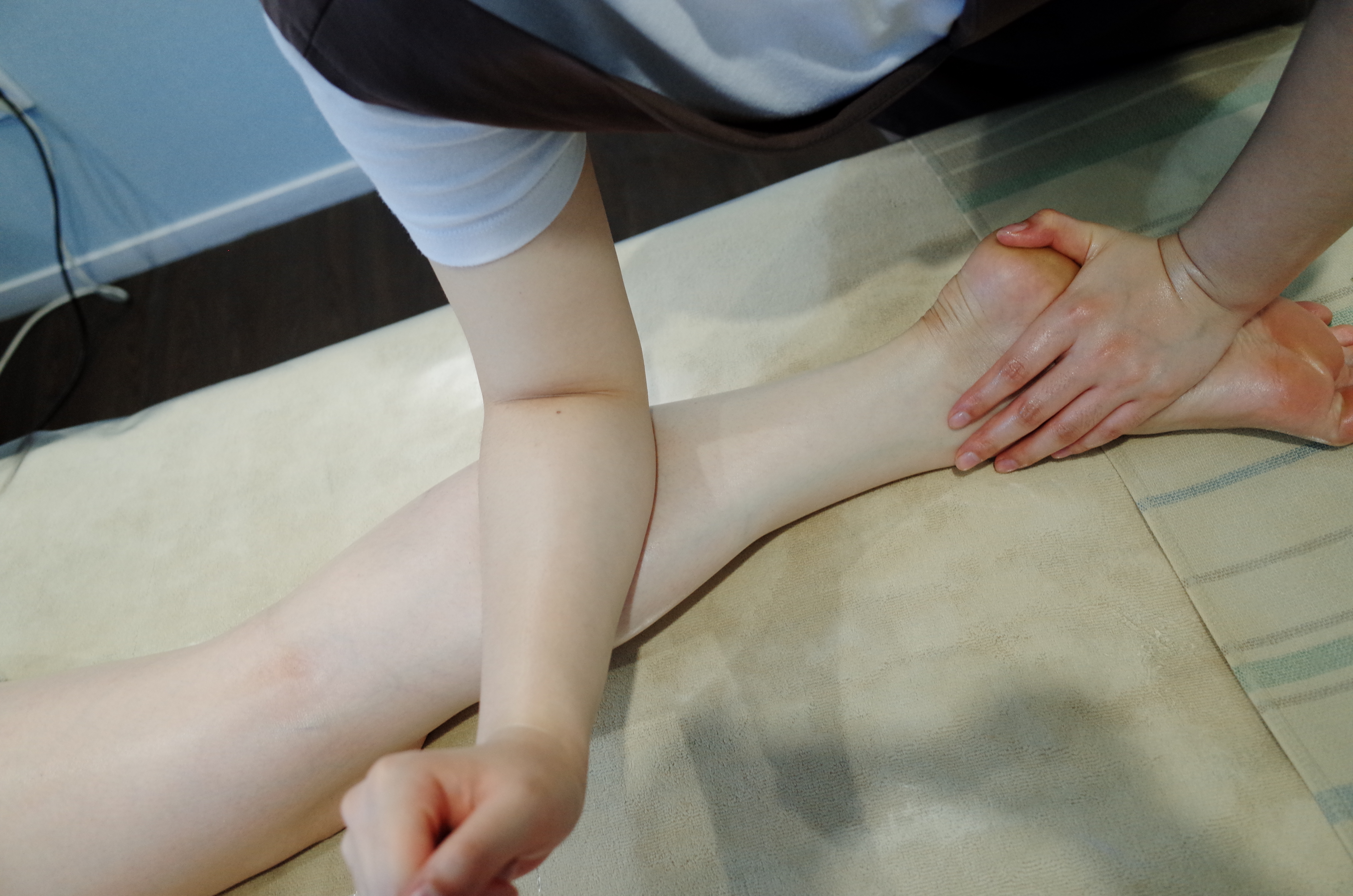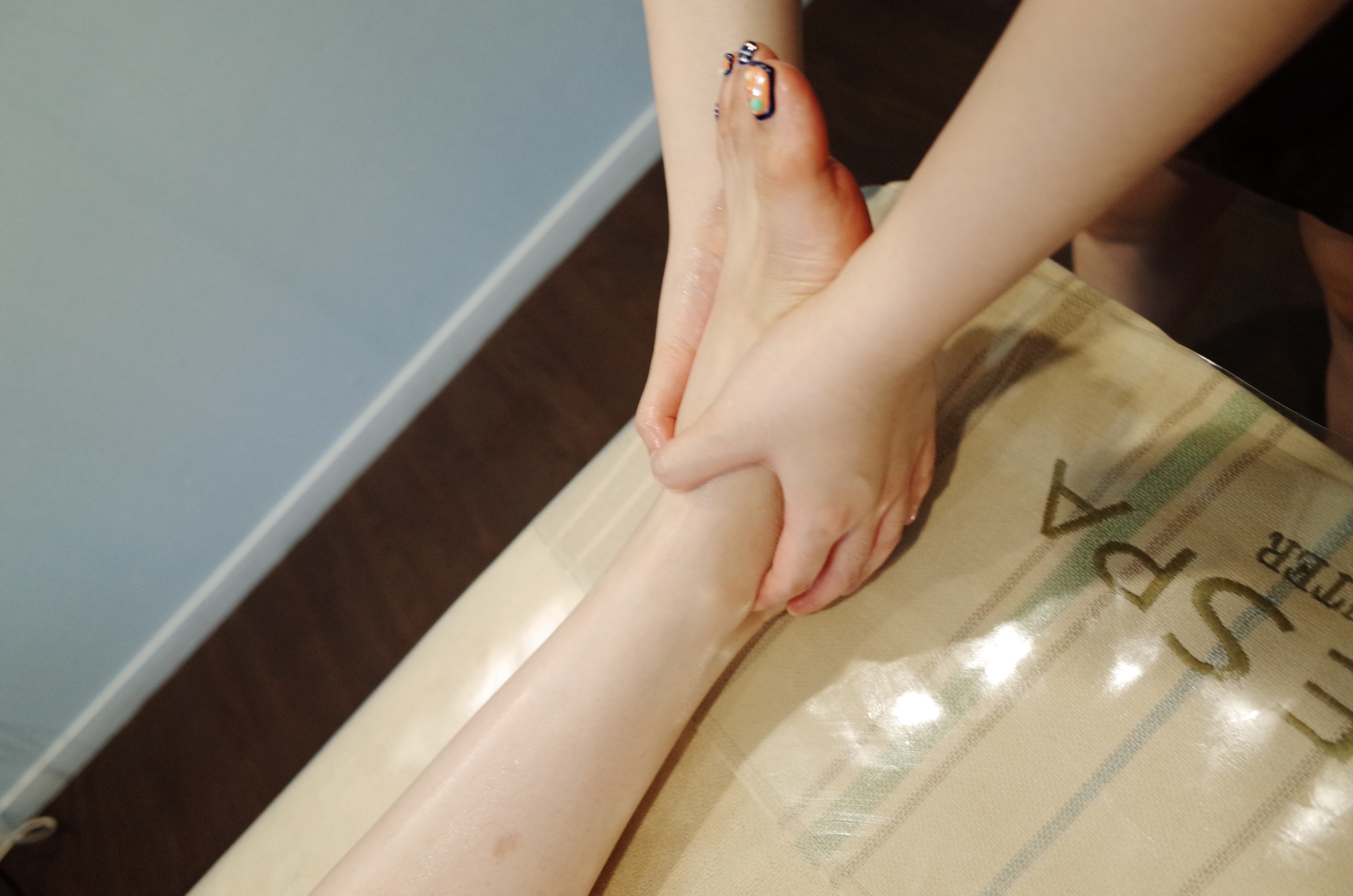허벅지랑 발목, 발등까지도 꼼꼼하게 마사지를 해주세요.