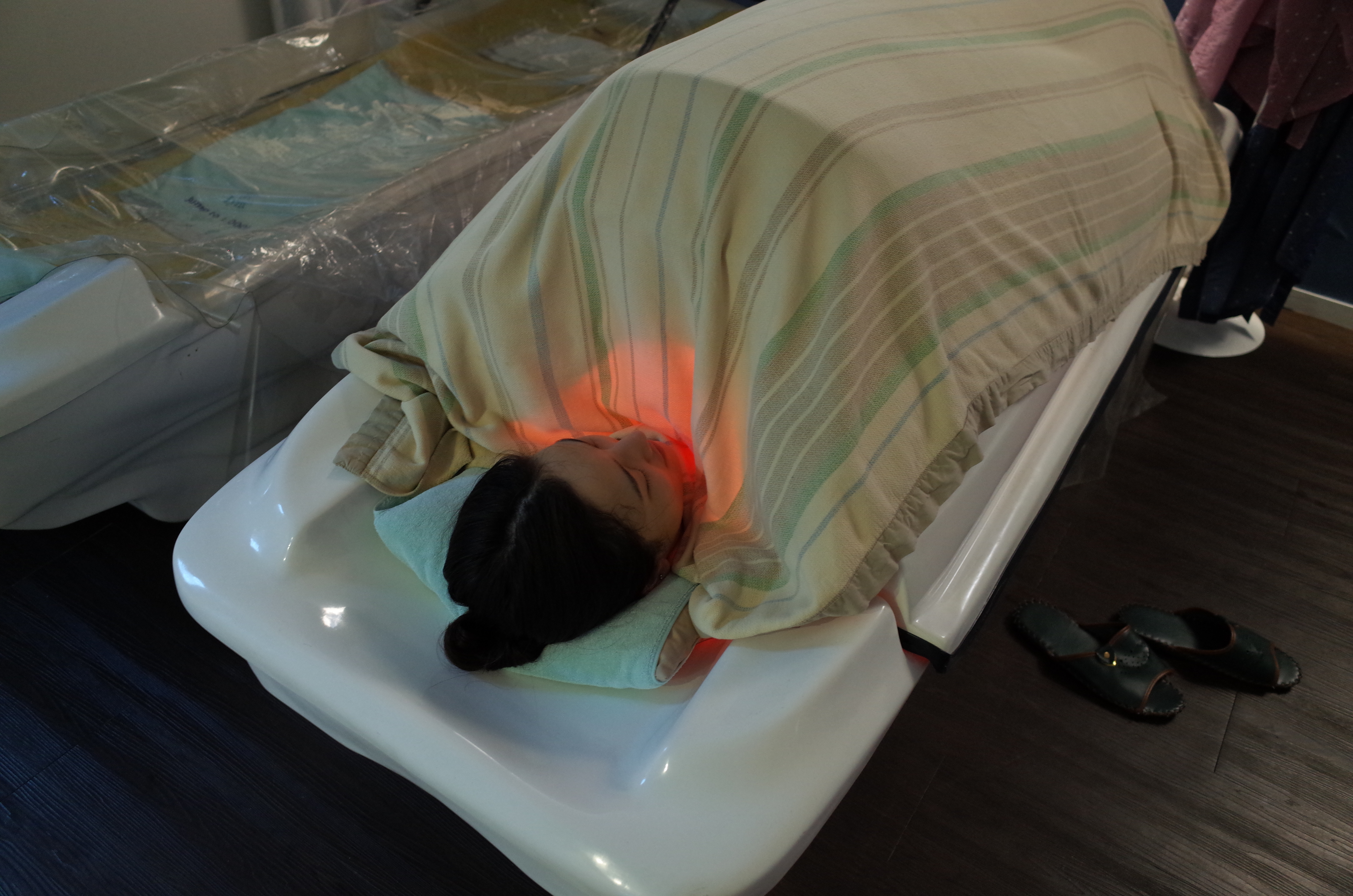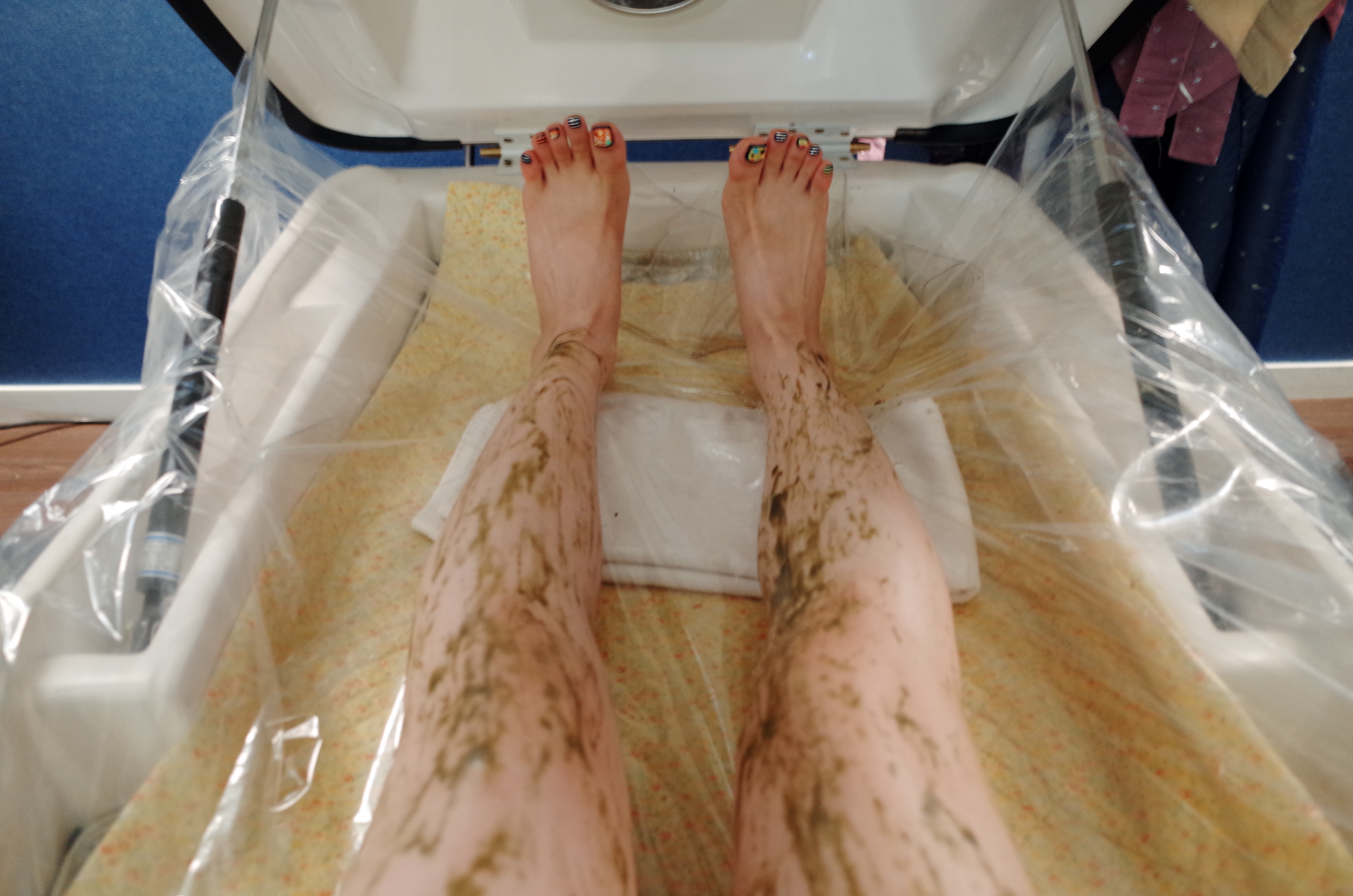 따뜻한 돔 속에 들어가 다리 전체에 팩을 바르고 누워있는 건데요.