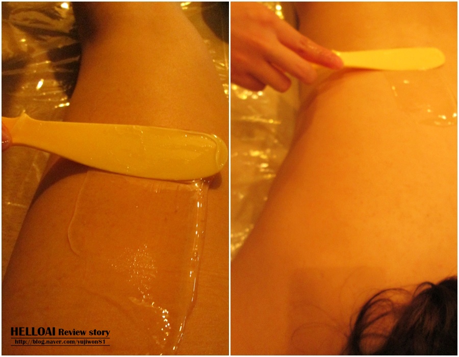 먼저 노폐물 배출이 될수 있는 슬리밍발열젤을 발라 몸의 온도를 높여주었어요.